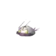Wimpod is a small, arthropod Pokémon. Its main body is purple and is covered by silver plating across its back. There are four plates in total. The first plate covers half of its head but leaves room for its eyes. The upper lids of its eyes appear to be covered with additional plating. The three plates on its back overlap and each one has a single black triangle in the middle. It has a long spike on each side of its head that curves backward, large yellow eyes with two short extensions over them like eyelashes, and two flat antennae that extend over its back. There are four short legs on its underside, and it has a long, prickly tail.