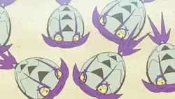 This Pokémon is cowardly by nature and wary of both noise and sudden movements. However, its curiosity will cause it to approach people or Pokémon that are standing still. It will spit a poisonous liquid when threatened. Wimpod sometimes accompanies its evolved form, Golisopod. The stench of this fluid warns others that danger is nearby. Wimpod will eat and store anything, including garbage from the sea. This habit makes them highly valued as cleaners.[1] When it finds coins, Murkrow and Meowth go after it.