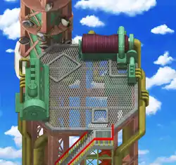 The top level of the tower is where the player first meets Blue Eyes, who has shut down the tower preventing Rand and the others from contacting the Ranger Union. Raikou later destroys the antenna to the tower while it is trying to attack Blue Eyes. Rand, Burkhart, and others spend most of the storyline trying to fix the tower to create communications with the other rangers.