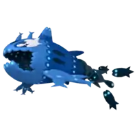 The people of Alola and Galar, however, still fear Wishiwashi and call it the "demon of the sea" due to its School Form. Even the fearsome Gyarados and Wailord are known to flee from it when it enters School Form. Wishiwashi assumes this form whenever a Wishiwashi is in danger or is bullied. Wishiwashi can concentrate their powers when assembled. The School Form's Water Gun is said to be more powerful than a Hydro Pump move. Should it get wounded in School Form, Wishiwashi will split into a regular school before fleeing.