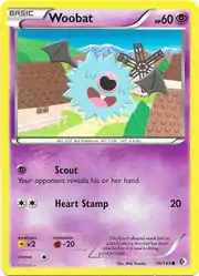 Woobat (Japanese: コロモリ Koromori) is a Psychic-type Basic Pokémon card. It is part of the Boundaries Crossed expansion.