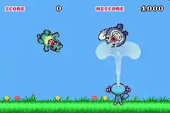 In Wooper's Juggling Game, the player takes the role of a Wooper. The objective of the game is to use Water Gun to keep Poliwag and Totodile from hitting the ground. Points are accumulated by sending one of the Pokémon flying by hitting it at close range with Water Gun. After 3000 points have been accumulated, Psyduck will join the game. Poliwag falls faster than Totodile, while Psyduck requires two blasts of Water Gun to send it flying. The game ends if one of the Pokémon lands on the ground.