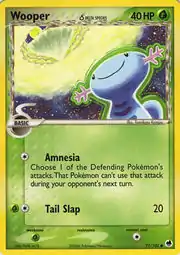Wooper δ (Japanese: ウパー δ Upah δ) is a Grass-type Basic Pokémon card. It is part of the EX Dragon Frontiers expansion.