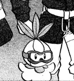 In Putting a Crimp in Kricketot, a Worker in Oreburgh City is seen loudly scolding his Psyduck, nicknamed "Yeller" (Japanese: きいろ Yellow), for playing with the controls of a bulldozer. Psyduck had caused the machine to roll down the hill, putting Diamond, Pearl, and Platinum in danger. The Worker apologizes to them, and Platinum asks him for a tour of the Oreburgh Mine as repayment, hoping to dig for coals. Diamond and Pearl initially let her go by herself with the Worker. However, they go after her as soon as Chatler tells the location of the mine to the boys by repeating the Worker's voice. After Platinum's Piplup defeats a swarm of Kricketune, the Worker mentions that Roark envisioned the mine as a place to dig for coal, and for training Pokémon as well. Piplup's pride is hurt because she has not participated in the past few battles together with Diamond and Pearl's Pokémon, so the Worker suggests Platinum to go challenge the Oreburgh Gym to help Piplup regain her confidence.
