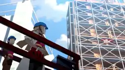 In Assistant, a group of Workers were at a construction site visited by Oleana.