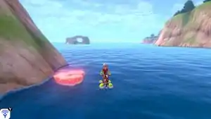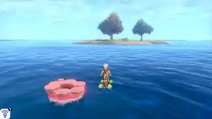 This den is near an islet with a boulder, and can be reached by heading to the islet directly opposite Armor Station, then heading straight ahead.