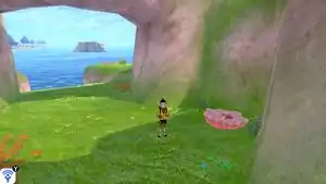 This den is near two rocky islands, and can be reached from Den D, after turning so the mainland is on your right and swimming to the islet with a boulder, then heading to the den that's between two rocky islands.
