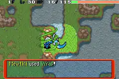 In Red Rescue Team and Blue Rescue Team and Explorers of Time, Darkness and Sky, Wrap is a status move with 22 PP and 100% accuracy. It gives the foe a Wrapped status, and the user a Wrapping status. Both statuses prevent movement and the Pokémon from taking any actions. Both statuses are cured when the foe "regains mobility" which occurs within five turns. A Pokémon that is Wrapped takes 6 HP damage every two turns. Wrap can be linked with another move, but if Wrap is the first move in the link, the second move in the link will not be used. Being a status move, this move is affected by Taunt.