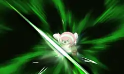 | The leaves on Leavanny's arms glow light blue. Leavanny then crosses its arms, runs at the opponent, and tackles it with its arms. | |||