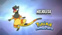 - While Ash's Pokédex is describing Heliolisk, the black tip of Clemont's Heliolisk's tail is colored yellow instead.