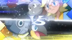 The group enter into Prism Tower through a hole caused by Garchomp's rampage, and then proceed to the Gym via the ventilation system. However, Clemont's Magnemite and Magneton are patrolling the halls and, although they are initially happy to see him, they have been ordered by Clembot to eliminate intruders, so Ash's Froakie uses its frubbles to temporarily incapacitate them while the group continues on to the battlefield. Once they reach the field, they are recognized as challengers by Clembot. Clemont once again activates its Master Recognition Battle Mode, and, after concentrating on the day Clembot was first activated, finally remembers the correct voice code and is permitted to battle against his creation. As Clemont sends out his Bunnelby, Clembot chooses Heliolisk as its Pokémon. Although Heliolisk is happy to see Clemont, the latter tells Heliolisk to give it everything it has in this battle, to which Heliolisk agrees.