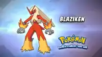 However, the group is frightened by loud noises from the depths of the cave, and Team Rocket flies out, blasting off again. Despite the danger, Korrina is determined to find the stone, and the Trainers advance into the cave. The party come to an open door, revealing a large chamber with a single path leading to the Lucarionite. However, as Korrina and Lucario run down the path, they are blocked by a Blaziken, who begins to battle with Lucario. Korrina and Lucario realize that in order to get the stone, the pair must defeat Blaziken.