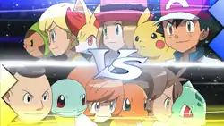 Bulbasaur then proceeds with charging up Solar Beam, and Tierno and Trevor plan to buy Bulbasaur some time. Tierno commands Squirtle to use Aqua Tail, which overpowers Fennekin's Hidden Power, causing Fennekin to faint. Charmander uses Flamethrower, which Pikachu dodges, but then Bulbasaur fires off its now-ready Solar Beam at Pikachu. Clemont commands Chespin to use Vine Whip, which picks up Pikachu, narrowly avoiding the Solar Beam. Pikachu then hits Charmander with Thunderbolt, causing it to faint.