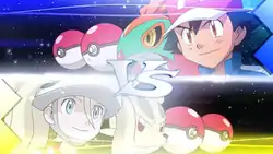 After arriving at Shalour City, Ash is ready to battle Korrina and get his third Kalos Gym Badge. Froakie and the others watch the match unfold from a viewing platform. Gurkinn is the referee and says that this battle is three-on-three and only Ash is able to make substitutions.