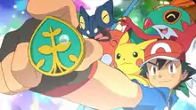 - Ash has a Gym battle with Ramos and wins, earning the Plant Badge.