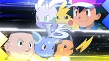 With Team Rocket out of the way, Ash and Tierno resume their battle. Pikachu uses Quick Attack while Wartortle holds its ground and use Rapid Spin. Pikachu manages to dodge while Raichu uses Charge Beam and Focus Blast on Goodra, but Goodra takes the hit and begins charging Bide. Although Pikachu tries to counter another Focus Blast with Electro Ball, Wartortle interferes with another Rapid Spin and allows Raichu to successfully execute its attack. With its Bide fully charged, Goodra launches the attack and Wartortle tries to block with Hydro Pump, but Pikachu responds with Iron Tail, allowing Goodra's Bide to hit Raichu and Wartortle. Tierno and his Pokémon then begin their dance rhythm and Wartortle uses Skull Bash, but Goodra catches and holds Wartortle. As Raichu tries to use Focus Blast, Pikachu counters it with Electro Ball again. Goodra throws Wartortle into Raichu, leaving them both struggling. To finish off their opponents, Pikachu uses Thunderbolt on Wartortle and Goodra uses Dragon Pulse on Raichu. Both attacks hit the Pokémon, knocking them out, and Ash is declared the winner of the battle.