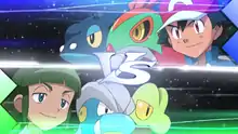 - In the Swedish dub, after Frogadier lands from using Water Pulse, Ash's English voice can be heard.