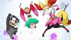 - Serena's Braixen and Pancham remain outside of their Poké Balls throughout the episode.