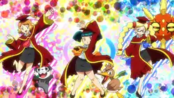 - Serena's Braixen and Pancham remain outside of their Poké Balls throughout the episode.