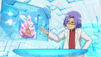 At the sundial, Ash's group finds Team Rocket trying to lift the sundial away with massive grapplers from their balloon. Ash has Frogadier use Water Pulse to stop them, which causes Team Rocket to lose their grip, damaging the sundial in the process much to Charlene's horror. At that point, Meowstic's Future Sight activates, bombarding Team Rocket with energy blasts and sending them blasting off. Olympia descends upon the group as they marvel at her power, noting the accuracy and timing of her Future Sight. Clemont asks if Ash is ready to fight Olympia, since she's not only a master of Psychic-type Pokémon but can also see into the future, but Ash remains as psyched as ever. Olympia tells Ash to prepare for infinite possibilities in their upcoming battle.