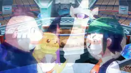Tierno orders another Hydro Pump, but this time Aegislash cuts through it with a powerful Sacred Sword that sends Ludicolo flying. While Ludicolo is reeling, Sawyer orders another Swords Dance. Ludicolo tries to execute Solar Beam, but Aegislash uses Sacred Sword again to tear through it, connecting with Ludicolo and knocking it out. As Tierno thanks Ludicolo for his hard work, he sends out Raichu next. Raichu's opening Charge Beam is blocked by Aegislash's King's Shield, but she manages to burrow into the earth with Dig to evade Aegislash's followup Slash. Raichu takes advantage of the opening while Aegislash has lost sight of him to complete the attack and knock Aegislash out.