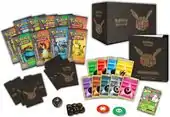 The Evolutions expansion features two different Elite Trainer Boxes, one for Mega Charizard Y, the other being for Mega Blastoise. The one featuring Mega Blastoise contains blue packaging and sleeves, with blue dice, while the one featuring Mega Charizard Y contains red packaging and sleeves with red dice. Each Elite Trainer Box contains a stock of Energy cards, 65 card sleeves themed around the featured Pokémon, 6 damage counter dice, a coin-flip die, two acrylic Special Condition markers, the Evolutions Player's Guide for the expansion, and a collector's box.