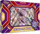 The Gengar-EX Box was 1 of 5 boxes released in November 2016. It comes with a regular and oversized Gengar-EX from the Phantom Forces expansion, four booster packs from recent XY expansions, and a code card for the TCGO.