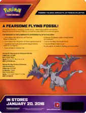 Released on January 6, 2017, the BREAK Evolution Box: Arcanine was the third product to feature promotional prints of Pokémon BREAK, and like the primary iteration of this product line, features only Pokémon BREAK. Each box includes Pokémon BREAK that were originally Japanese XY-P Promotional cards: Arcanine was a CoroCoro Ichiban! insert promo, Crobat was initially given to winners of Pokémon Card Gym tournaments, and Mandibuzz was a gift with purchase promo. Each box also includes a Jumbo version of Arcanine BREAK, 5 booster packs, and a code card for the TCGO.