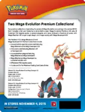 One of two Premium Collections officially released on November 4, 2015 with the BREAKthrough expansion, the Mega Blaziken-EX Premium Collection featured the Hoenn region Blaziken as a variety of different promotional items. Included within each Premium Collection are 8 booster packs (2 each from Primal Clash, Roaring Skies, Ancient Origins, and BREAKthrough), a playmat featuring Mega Blaziken, both a XY Promotional Blaziken-EX and M Blaziken-EX, a Jumbo M Blaziken-EX, and a coin featuring Mega Blaziken.