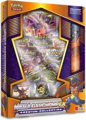 One of two Premium Collections released on November 18, 2016, the Mega Garchomp-EX Premium Collection included 8 booster packs, a playmat featuring Mega Garchomp, both a XY Promotional Garchomp-EX and M Garchomp-EX, a Garchomp Spirit Link promo card, a Jumbo M Garchomp-EX, a coin featuring Mega Garchomp, and a code card for the TCGO.