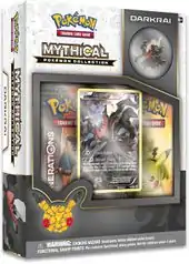 The Volcanion Mythical Collection was one of two Mythical Collections released on January 20, 2017. It comes with a Volcanion Full Art card, Celebi, Jirachi, Darkrai, Victini, and Keldeo XY Black Star Promos, 5 booster packs, and a code card for the Pokémon Trading Card Game Online.