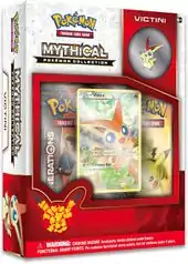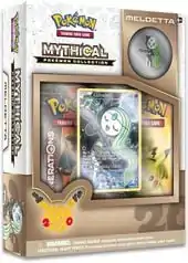 The final TCG product released as part of the Pokémon 20th Anniversary merchandise campaign was the Mythical Pokémon Collection—Meloetta, which coincided with the distribution of the final 20th Anniversary event Pokémon on December 1, 2016. Each collection includes two Generations booster packs, a promotional Full Art Meloetta card, a Meloetta pin, and a code card for the TCGO.
