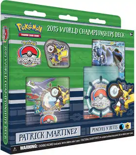The 2015 World Championships Decks were released on November 18, 2015, a few months after the 2015 World Championships. These four decks were chosen from the 12 Quarter-Finalists split between the 3 age groups from the Championships, each representing a different winning deck archetype used in the tournament. Each deck includes a deck box featuring visuals created for the tournament, a booklet detailing the events of the weekend, a non-tournament-legal print of the 60-card deck, and a 2015 World Championships Pin.