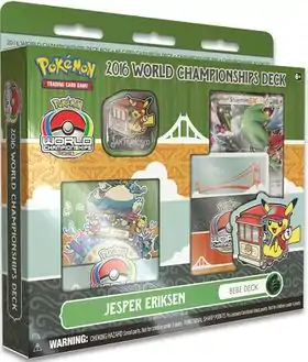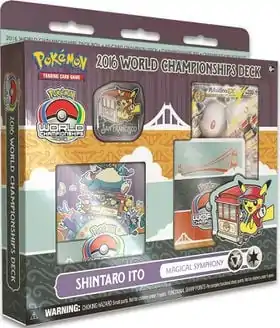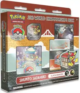 The 2016 World Championships Decks were released on November 9, 2016, a few months after the 2016 World Championships. These four decks were chosen from the 6 Finalists split between the 3 age groups from the Championships, each representing a different winning deck archetype used in the tournament. Each deck comes with a Worlds 2016-themed deck box, a booklet about the championships, a non-tournament-legal print of the 60-card deck, and the 2016 World Championships Pin.