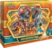 The Box Charizard-EX (English: Charizard-EX Box) was released February 6, 2015. This promotional box contains an exclusive Holographic Charizard-EX card, as both a standard sized and Jumbo Promotional card, in addition to six booster packs, and a code for the Pokémon Trading Card Game Online, allowing players to unlock Charizard-EX online.