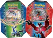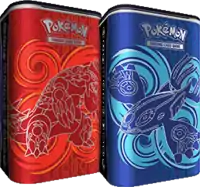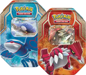 On June 26, 2015, a new pair of Collector's Tins, the Latas das Lendas de Hoenn (English: Legends of Hoenn Tins) were released. Featuring Kyogre and Groudon, each tin contains an exclusive artwork of the Primal Clash Kyogre-EX or Groudon-EX, as well as four booster packs from XY Series expansions, and a code card for the Trading Card Game Online. Instead of unlocking the promo card, the code unlocks a full 60-card deck (the code from the Kyogre-EX tin unlocks the Kyogre-EX Deck and the code from the Groudon-EX tin unlocks the Groudon-EX Deck).