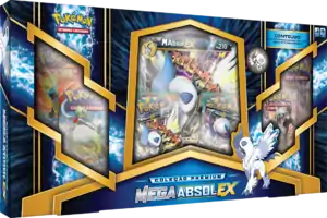 The Coleção Premium Mega Absol-EX (English: Mega Absol-EX Premium Collection) is a special collection released on December 4, 2015, alongside the Coleção Premium Mega Diancie-EX. Featuring the Disaster Pokémon Absol, the Coleção Premium Mega Absol-EX contains an exclusive Absol-EX promotional card, a M Absol-EX promotional card as both a regular sized and Jumbo card, an Absol collector's pin, six booster packs from recent expansions, a Mega Absol coin, and a code card for the online game.