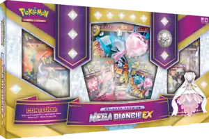 The Coleção Premium Mega Diancie-EX (English: Mega Diancie-EX Premium Collection) is a special collection released on December 4, 2015, alongside the Coleção Premium Mega Absol-EX. Featuring the Jewel Pokémon Diancie, the Coleção Premium Mega Diancie-EX contained an exclusive Diancie-EX promotional card, a M Diancie-EX promotional card as both a regular sized and Jumbo card, a Diancie collector's pin, six booster packs from recent expansions, a Mega Diancie coin, and a code card for the online game.