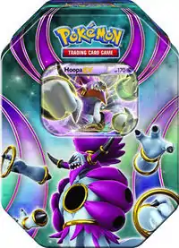The tins released on March 2, 2016 are known as the Latas Poderes do Além (English: Powers Beyond Tins). The three tins featured alternate artwork reprints of Latios-EX and Rayquaza-EX from the Céus Estrondosos expansion and Hoopa-EX from Origens Ancestrais. Each tin contained 4 booster packs from recent expansions, and a code card for the online card game unlocking a full 60-card deck.