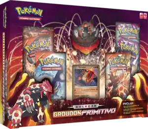 Released on August 20, 2015 alongside the Coleção Kyogre Primitivo, the Coleção Groudon Primitivo (English: Primal Groudon Collection) contains a figure of Primal Groudon. The box features the Continent Pokémon as one of the XY Black Star Promos and six booster packs from recent expansions.