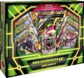 Following the Rayquaza-EX Box, the Box Rayquaza-EX Brilhante (English: Shiny Rayquaza-EX Box) released on February 26, 2016 featuring promotional and Jumbo cards. Unlike previous Boxes, the two cards are not the same: the regular card is the Shiny print of Rayquaza-EX, which was released in Japan during a mail-in campaign held around the release of Emerald Break, while the Jumbo card is one of the three Shiny Pokémon-EX from the Origens Ancestrais expansion, with the different cards exclusive to certain stores. It also includes 6 booster packs and a code card.