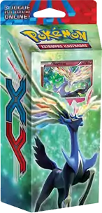 The first set of Theme Decks released during the XY Series are the two for the XY expansion. Made available starting May 23, 2014, the Vida Resiliente and Investida da Destruição Theme Decks feature the two Legendary Pokémon of the Kalos region: the Life Pokémon Xerneas and the Destruction Pokémon Yveltal. Vida Resiliente features both Fairy-type and Psychic-type Pokémon, while Investida da Destruição features Darkness-type and Fighting-type Pokémon. Each deck includes an exclusive Cracked Ice Holofoil print of their featured Pokémon, in addition to damage counters, a custom coin, a rule sheet, a deckbox featuring their respective Pokémon, and a code for the Pokémon Trading Card Game Online, allowing players to unlock the deck online.