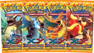 The Flash de Fogo Booster packs were released along with the Theme Decks on September 12, 2014, featuring Mega Kangaskhan, Mega Charizard X, Mega Charizard Y, and Pyroar. They were also available inside blisters.