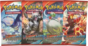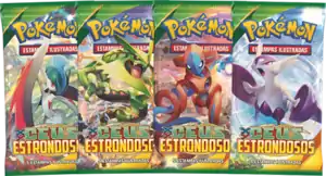The Céus Estrondosos Booster packs were released along with the Theme Decks on August 14, 2015, featuring Mega Gallade, Mega Rayquaza, Deoxys, and Mega Latios. They were also available inside blisters.