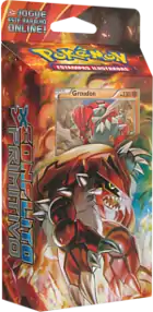 The fifth expansion of the XY Series, Conflito Primitivo (English: Primal Clash), includes two additional Theme Decks for the Pokémon Trading Card Game. Available starting May 15, 2015, Núcleo Oceânico and Pulso Terrestre featured the two mascot Pokémon for Pokémon Omega Ruby and Alpha Sapphire, with Groudon's deck featuring the Fighting-type and Lightning-type and Kyogre's deck including the Water-type and Fire-type. Each deck includes an exclusive Cracked Ice Holofoil print of their featured Pokémon, in addition to damage counters, a custom coin of either Primal Kyogre or Primal Groudon, a rule sheet, a deckbox featuring their respective Pokémon, and a code for the Pokémon Trading Card Game Online, allowing players to unlock the deck online.