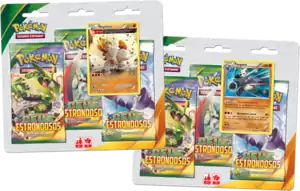 Joining the Céus Estrondosos Theme Decks alongside the expansion on August 14, 2015 were a pair of Three Pack Blisters, featuring the Fighting-type XY Black Star Promos Regirock and Pangoro. Each Blister Pack contains packs from the Céus Estrondosos expansion and one of the aforementioned promo cards.