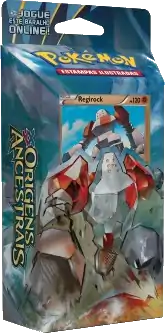 The two Theme Decks for the Origens Ancestrais (English: Ancient Origins) expansion are based around Metagross and Regirock. Available starting October 30, 2015, the Maré de Ferro deck, centered around Metagross, featured Metal-type and Water-type Pokémon, while Regirock's Coração de Pedra deck features Grass-type and Fighting-type Pokémon. Each Theme Deck also contained the typical damage counters, coin, playmat, deckbox, and code card for the TCGO. There were three coins included in the two decks at random: Silver Primal Kyogre, Silver Primal Groudon, and Silver Mega Rayquaza.