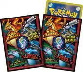 - The Mega Rayquaza Sleeves (Japanese: デッキシールド メガレックウザ Deck Shield: Mega Rayquaza) feature the Sky High Pokémon rising through the air amidst a meteor shower.