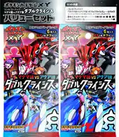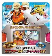 Available upon the release of the Magma Gang VS Aqua Gang: Double Crisis sub-set on January 30, 2015 was the Magma Gang VS Aqua Gang: Double Crisis Value Set (Japanese: マグマ団VSアクア団 ダブルクライシス バリューセット). Each Value Set comes packaged with 2 Magma Gang VS Aqua Gang: Double Crisis Concept Packs, 1 set of 5 Basic Energy cards, and 1 half deck case adorned with artwork of Kyogre, Groudon, Team Aqua, and Team Magma. The Energy cards include 1 copy each of the primary types featured in the sub-set: Fire Energy, Water Energy, Psychic Energy, Fighting Energy, and Darkness Energy.