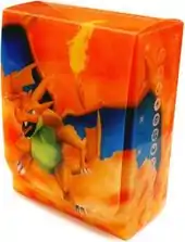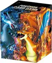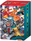 Deck case: The lone deck case released at this time was the Mega Charizard Deck Case (Japanese: デッキケース メガリザードン), which features the Flame Pokémon Charizard in both of its Mega Evolved states in a 5ban Graphics illustration. The deck case can store a maximum of 180 cards and comes with 2 card dividers—1 featuring Mega Charizard X and the other Mega Charizard Y.